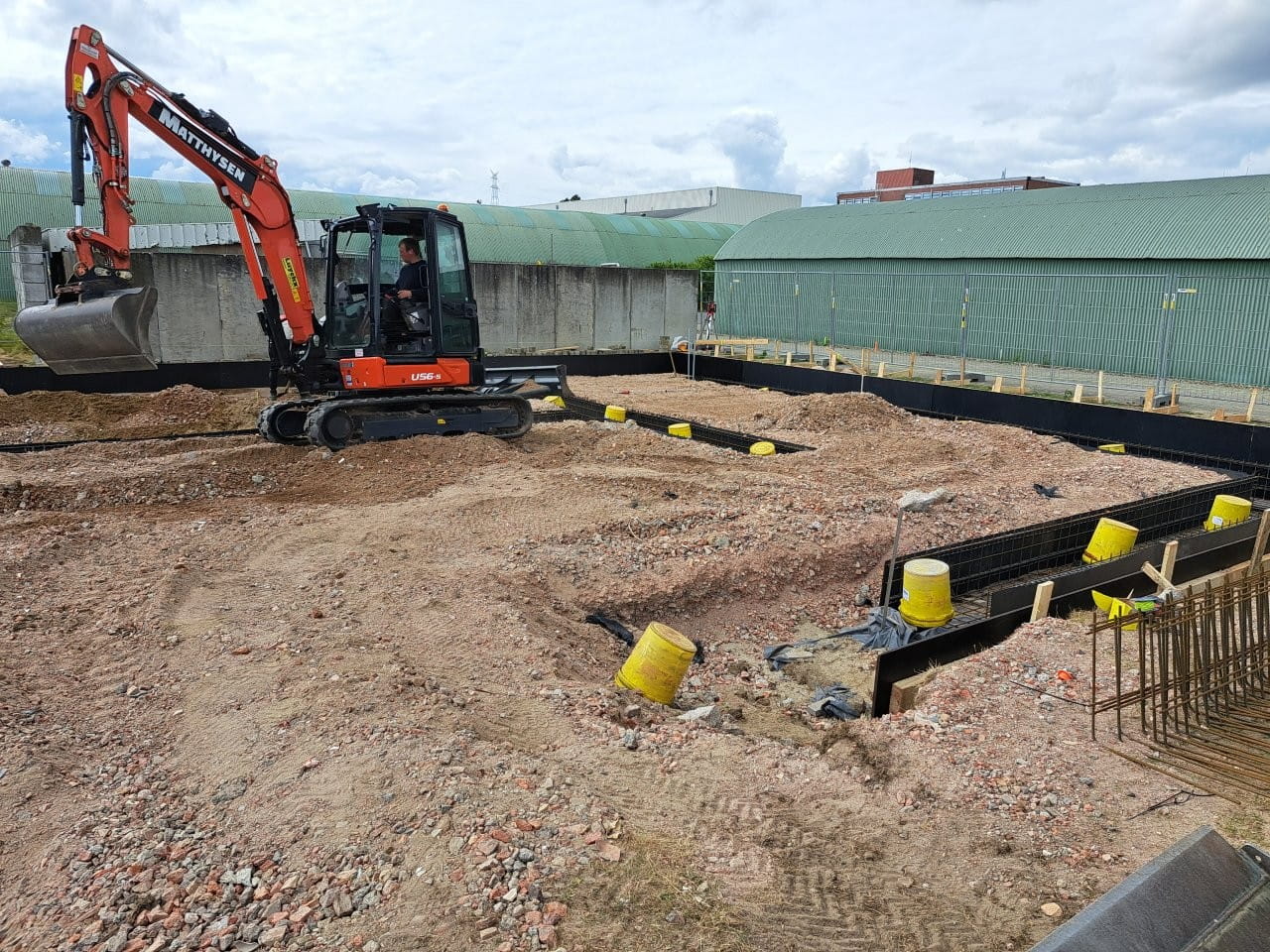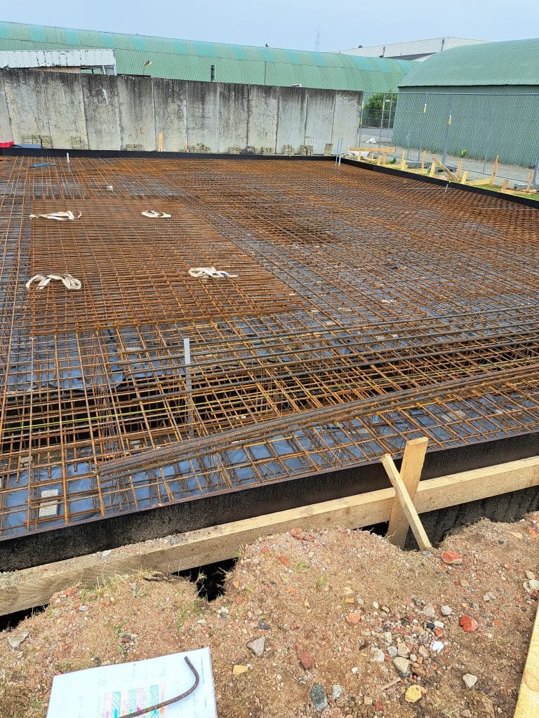 Voor Betonagglomeraten Gubbels hebben we een vloerplaat met onderliggende funderingsbalken gemaakt zodat de klant hierna er een RX-bunker uit prefab betonnen blokken op kon plaatsen.